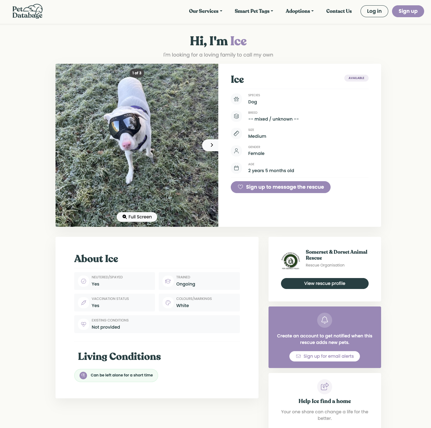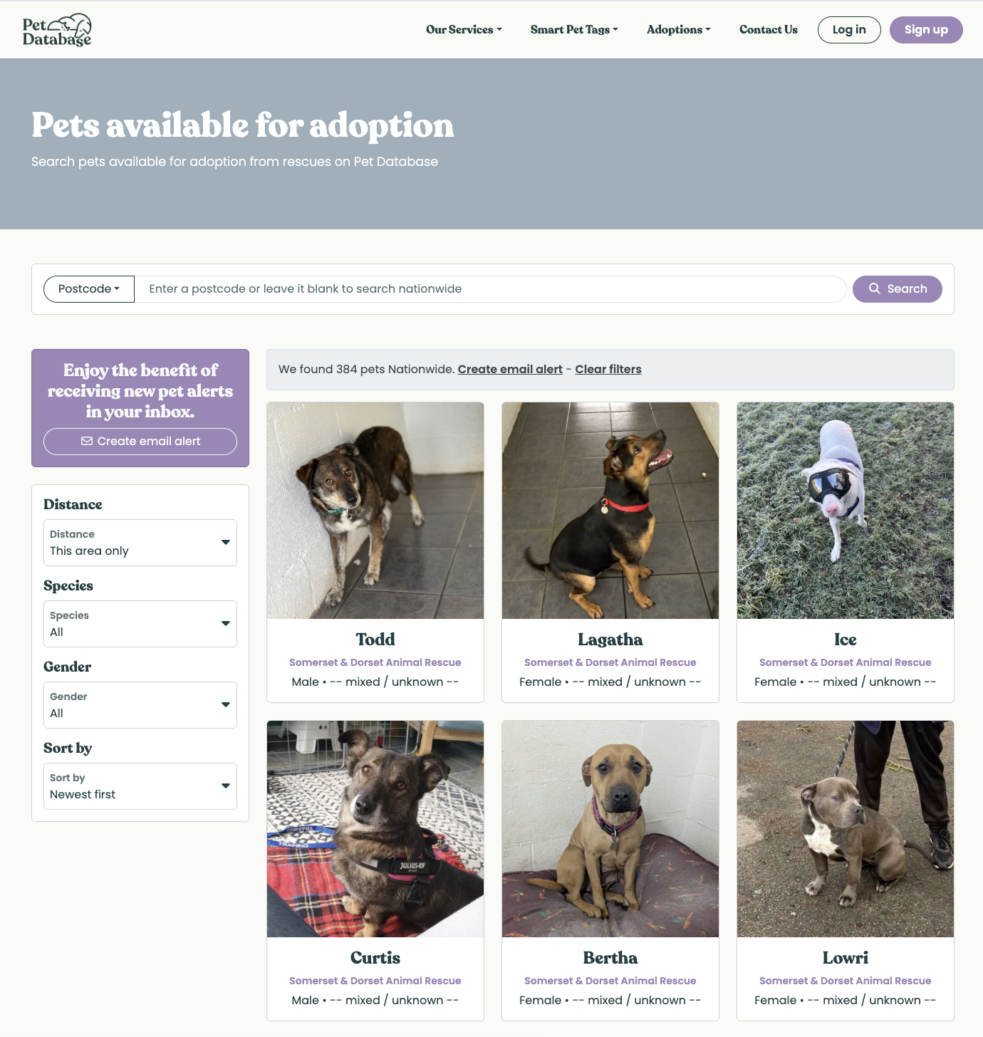 Pet Database makes it easy to browse pets that are looking for a loving home. Rescues across the country list their available animals directly on the platform.